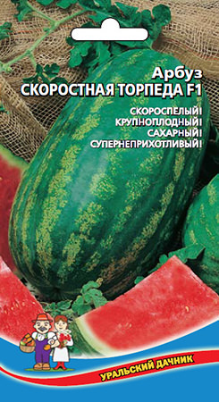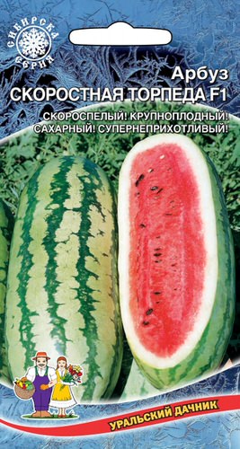 Скороспелый, высокоурожайный, быстрорастущий гибрид для выращивания в условиях пониженных температур и невысокого освещения. Плод овально-вытянутой формы, темно-зеленый, со светло-зелеными полосами, массой 10-12 кг. Мякоть ярко-малинового цвета, нежная, сочная, сахаристая, ароматная. Характерная особенность зрелого плода - очень тонкий слой корки и малое количество мелких семян.