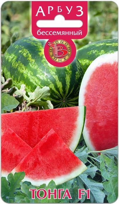 Плод оптимального размера, весом 7-10 кг, овально-вытянутой формы.Гибрид среднеранний, от посева до первого сбора плодов 85-90 дней. Растения мощные, хорошо облиственные. Плоды овальные, с классической полосатой окраской. Мякоть ярко-красная, хрустящая. Вкусовые качества высокие, сахаристость 12% по шкале Брикса. Благодаря отсутствию семян, очень удобен при потреблении.