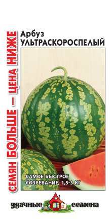 66-80 дней от всходов до плодоношения) сорт. Предназначен для выращивания в теплицах, под пленочными укрытиями и в открытом грунте (в южных регионах). Растение плетистое, плеть средней длины. Лист серо-зеленый, рассеченный. Плод округлый, гладкий, светло-зеленый с шиповатыми зелеными и темно-зелеными полосами средней ширины. Кора тонкая, на разрезе светло-зеленая. Масса плода 1,5-3,0 кг. Мякоть темно-красная, зернистая, нежная. Вкус отличный. Сорт устойчив к антракнозу. Урожайность 1,8-2,1 кг/м2