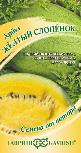 Среднеранний (65–75 дней от всходов до начала созревания) урожайный сорт с отличными вкусовыми качествами. Растение среднеплетистое. На одном растении развивается по 2-3 плода. Плоды округло-овальные, без полос, со слабой пятнистостью очень светлого или светло-зеленого тона, массой 6-8 кг. Кора средней толщины. Мякоть желтая, средней плотности, очень сладкая, с приятным послевкусием экзотических фруктов. Семена мелкие, черные. Предназначен для выращивания в пленочных укрытиях, теплицах и открытом грунте (южные регионы).