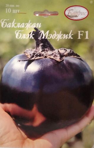 Гибрид баклажана округлой формы. Плод и чашелистик черно-фиолетового цвета.Семена сконцетрированы в нижней части плода. Масса 380-420гр.Обладает великолепными вкусовыми качествами.Сеять на глубину 0,5-1см, в начале февраля. Всходят на 14-21 день,высадка закаленной рассады в конце мая-начале июня на расстояние 80-100см.Предназначен для открытого грунта и пленочных теплиц.