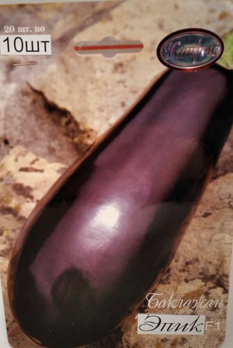 Растение прямостоячее, высотой 90-100 см, полураскидистое. Плоды каплевидные, выравненные по форме и размеру, длиной 21 см, диаметром 10 см, массой 200-350 г, тёмно-фиолетовые, глянцевые, с плотной, белой мякотью, без горечи, высокого качества. Устойчив к фузариозу и ВТМ. Предназначен для потребления в домашней кулинарии, консервирования и переработки. Рекомендуется для выращивания на шпалерах в теплицах, парниках и открытом грунте. Урожайность 5,8-8,3 кг/м2.