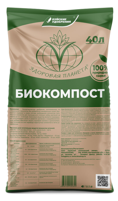 Биокомпост содержит в своем составе необходимое количество макро - и микроэлементов для полноценного питания любых растений на период до 1,5-2 месяцев. Гуминовые вещества являются природными стимуляторами роста и развития растений, а микробиологическая добавка обеспечит защиту корневой системы и дополнительным питанием за счет перевода недоступных элементов в легко усваиваемые.