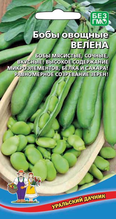 Среднеранний сорт (от всходов до технической спелости 70 дней, до созревания семян 83-87 дней). Растения слабоветвистые, высотой 80-100 см. Бобы крупные, мясистые, слегка изогнутые, длиной 10-12 см, без пергаментного слоя. Сорт неприхотлив, холодостоек, с высокой урожайностю. Бобы – ценный источник растительного белка (до 40 %) и пищевых волокон, а кроме того они - отличный сидерат, обогащающий почву азотом.