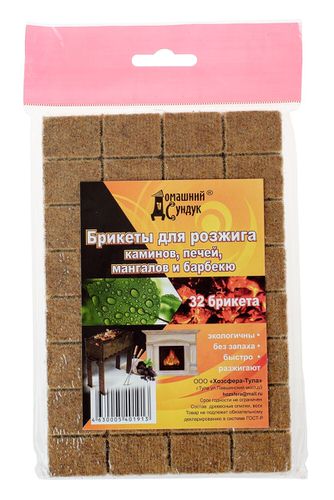 Представляют спрессованную смесь древесины и парафина, предназначены для легкого розжига каминов, костров, мангалов, печей даже в сырую и ветреную погоду.