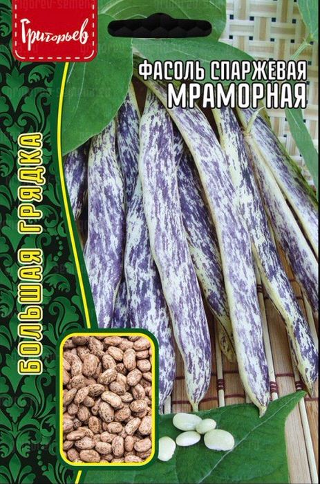 Среднеспелый сорт спаржевой фасоли. Растения кустовые, высотой 35-40 см, с яркими фиолетовыми цветками. Бобы плоские, пестрые, длиной 15-18 см, содержат около 6-8 семян. Спелое зерно - бежевое с фиолетовыми вкраплениями, крупное. А созревшие семена подходят для замораживания, консервирования, приготовления рагу.