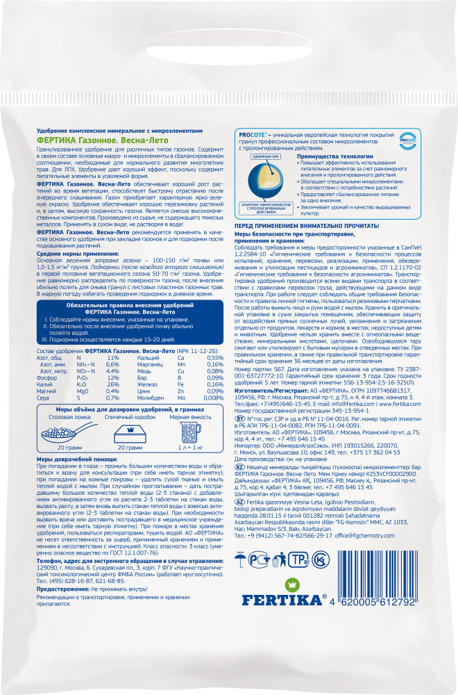 • Благодаря специальной европейской технологии покрытия гранул микроэлементами PROCOTE (прокоут), питательные вещества из гранул высвобождаются равномерно и действует постепенно.