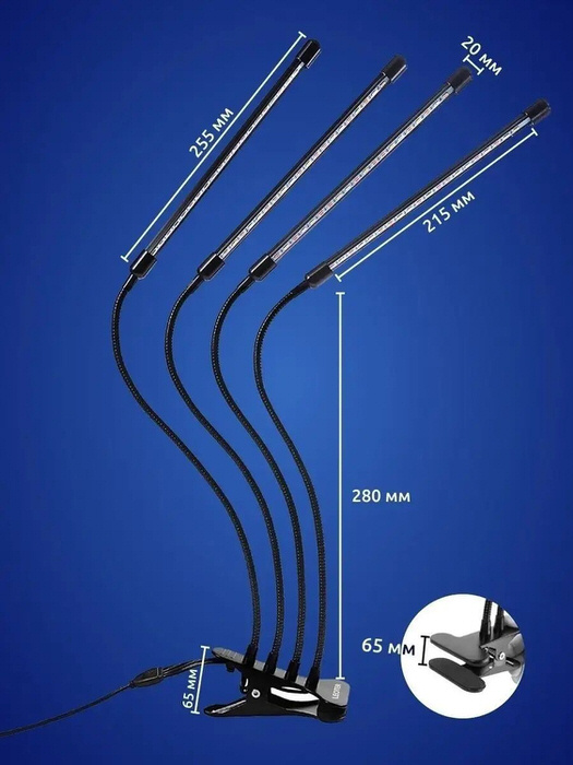 Таким образом вы сможете обеспечить своим растениям достаточное количество солнечного света, необходимого для процесса фотосинтеза. Фитолампа полного спектра абсолютно безопасна для человека, её свет не навредит вашим глазам. Лампу для цветов и растений легко установить благодаря компактной и простой сборке. Гибкость кронштейна позволяет поворачивать лампы в нужном направлении, тем самым выбирая угол, под которым будет исходить свет. 3 варианта светового спектра помогут полноценно, а главное, эффективно прорастить семена и увеличить рост растений с помощью равномерного распределения потока света. Установленный таймер облегчит вам жизнь, так как больше не придется следить за режимом включения и выключения устройства, ведь достаточно один раз настроить светильник и он уже будет следовать заданным параметрам.