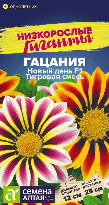 Гацании серии New Day компактны, отличаются простотой выращивания, отлично подходят для загущенных посадок, держат цветок открытым до позднего вечера. Кустики компактные, хорошо ветвистые, шириной 15-20 см, увенчаны множеством огромных ярких соцветий с характерным темным кольцом вокруг центра и уникальной полосатой окраской лепестков. Используются для оформления рабаток, бордюров, каменистых горок, отлично смотрятся в вазонах, балконных и оконных ящиках. Растение жаро- и засухоустойчивое, предпочитает открытые солнечные участки с хорошо дренированной легкой почвой. Избытка влаги не переносит, может переносить резкие похолодания до -5...-7ºC