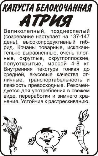 Созревание наступает на 137-147 день) высокопродуктивный гибрид. Кочаны товарные, исключительно выравненные, очень плотные, округлые, округло-плоские, полуоткрытые, массой 4-8 кг. Внутренняя текстура тонкая до средней, вкусовые качества отличные. Рекомендуется для употребления в свежем виде, переработки и зимнего хранения. Устойчив к растрескиванию. Дает хороший урожай на плодородных, хорошо оструктуренных, дренированных почвах с нейтральной реакцией среды. Предпочитает освещенные участки, не выносит затенения. Лучшие предшественники — бобовые, тыквенные, картофель, морковь, лук. Выращивают обычно через рассаду. Оптимальная температура для выращивания +15-28°С, ночью +12-14°С. Глубина заделки 2,0-2,5 см. При слишком высокой температуре воздуха рассада вытягивается. В период выращивания рассаду следует поливать умеренно. За несколько дней до высадки, рассаду закаливают. Посадочный интервал 60х60 см. Рассаду высаживают в возрасте 50-55 дней во влажную, удобренную почву. В течение всего сезона растениям необходимы регулярные обильные поливы, своевременные прополки, рыхление и подкормки азотными и калийными минеральными удобрениями. Хорошо отзывается на внесение микроудобрений, содержащих магний и бор.