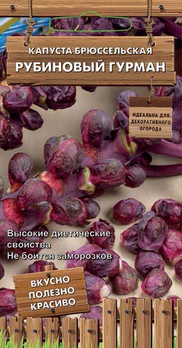 Высокие диетические и иммуностимулирующие свойства. Среднеспелый сорт. От высадки рассады до уборки 100-110 дней. Растение высотой 60-70 см. Лист темно-пурпурный со слабым восковым налетом. Плотное расположение многочисленных кочанчиков по стеблю. Кочанчики маленькие, округлые, пурпурно-красной окраски, усиливающейся при пониженных температурах. На одном растении 30-40 кочанчиков, общей массой 400-500 г. Обладают ценными диетическими качествами и нежным вкусом после кулинарной обработки. Употребляют в салатах, в качестве гарнира, в свежем виде, в супах и консервируют. Воздействие низких температур не меняет вкусовые качества и не уменьшает питательную ценность, поэтому капустные кочанчики можно подвергать глубокому замораживанию и хранить длительное время в морозильнике.