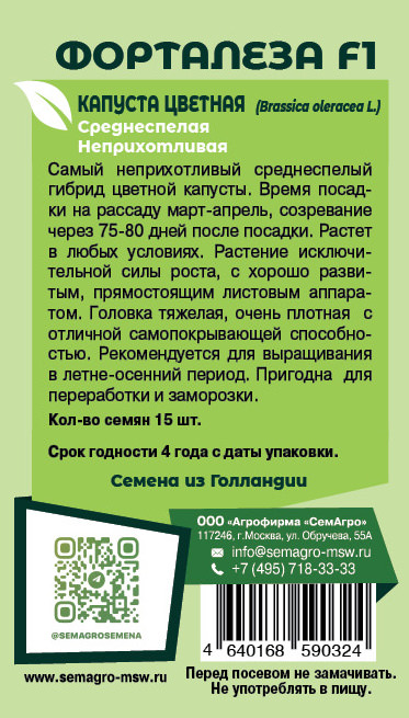 Среднеранний гибрид. Созревание через 75-90 дня после пересадки. . Головки плотные, хорошо защищены листьями. Рекомендуется для выращивания в летне-осенний период, для свежего рынка и переработки (заморозки).