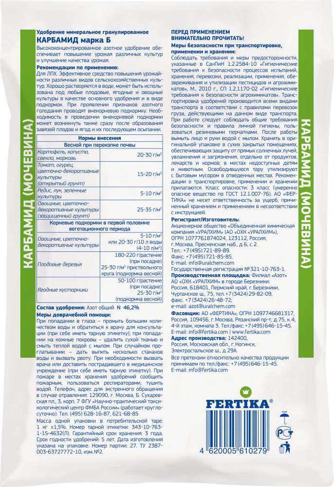 Вносится в почву в сухом виде путем разбрасывания и дальнейшей перекопки.