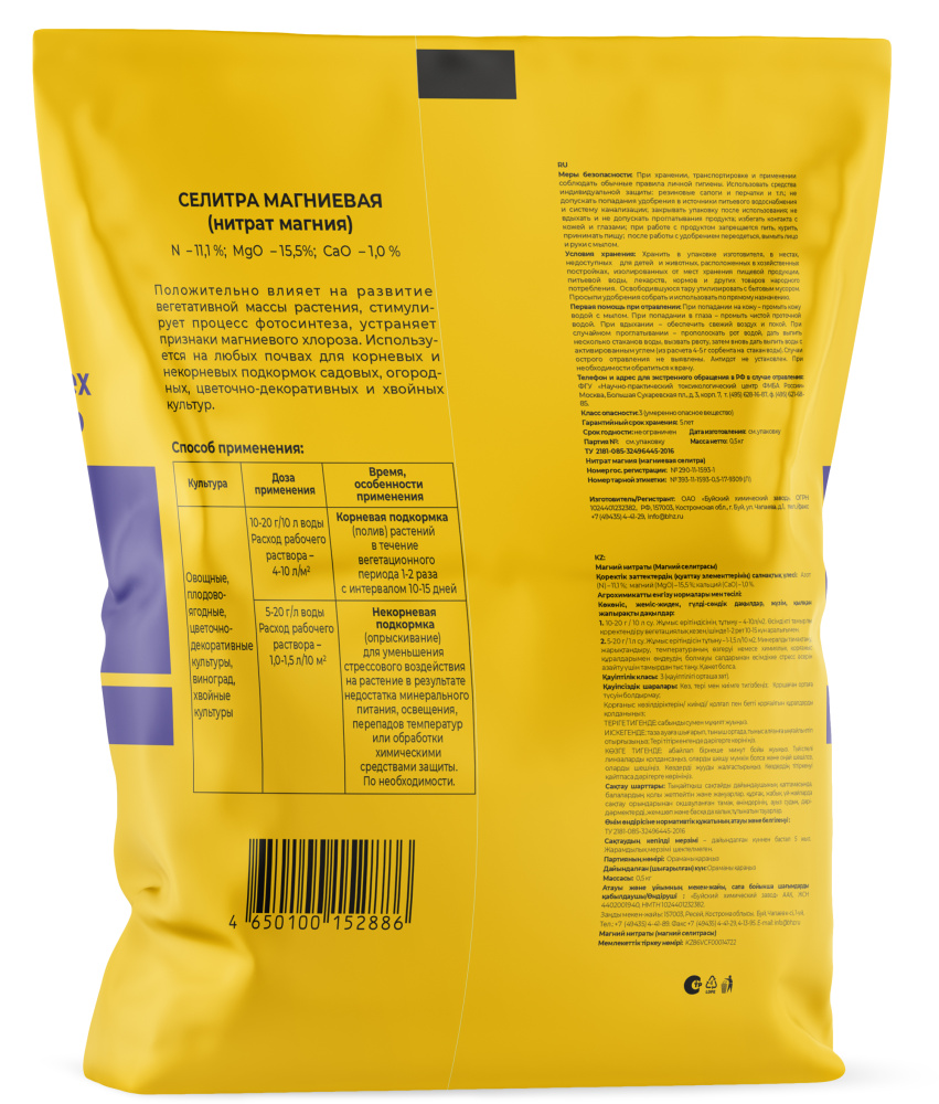 Эффективное азотно-магниевое удобрение с полностью доступным для растений магнием.