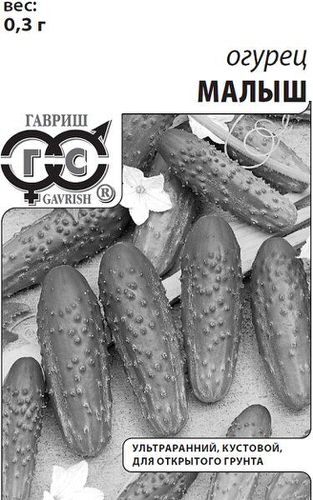 Ультрараннеспелый (41-43 дня от полных всходов до вступления в плодоношение) пчелоопыляемый, салатный, консервный сорт. Предназначен для выращивания в открытом грунте и под временными пленочными укрытиями. Посев на рассаду в начале мая. Высадка в грунт в конце мая – начале июня в фазе двух-трех настоящих листьев. Посев в открытый грунт проводится в конце мая – начале июня. Схема посадки 40х40 см. Растение кустовое, компактное, слабоветвистое, длина главной плети 33,4-42,5см. Зеленец крупнобугорчатый с редкими расположением бугорков, длиной 9-9,5см, массой 81-113 г. Вкусовые качества свежих плодов хорошие. Отличается дружной отдачей урожая, используется в свежем виде и для консервирования. Урожайность 1,3-2,6 кг/м2.