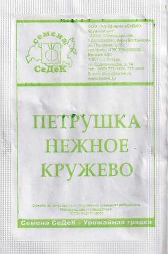 Среднеспелый (60-75 дней) сорт для многократной срезки зелени.Розетка полураскидистая, мощная. Листья тёмно-зёленые, кудрявые, сильногофрированные. Ценность сорта: высокая урожайность зелени, быстрое отрастание листьев после срезки и высокая декоративность. Прекрасно подходит для украшения и сервировки различных блюд. Содержит витамины, эфирные масла и минеральные соли. Сок листьев используют для отбеливания кожи, удаления веснушек и тёмных пятен на лице. В пищу используют в свежем, сухом, замороженном, консервированном и соленом виде, в качестве зелени, приправы и пряности.