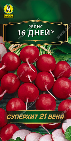Ультраскороспелый сорт редиса (срок созревания корнеплодов 16 дней) для ранней выгонки в открытом и защищенном грунте. Корнеплоды округлой формы, выравненные, ярко-красные. Мякоть белая, нежная, очень сочная. Эфирные масла, придают деликатесный слабоострый вкус. Сорт высокоурожайный, устойчив к растрескиванию корнеплодов и стрелкованию. Редис повышает аппетит и улучшает пищеварение.
