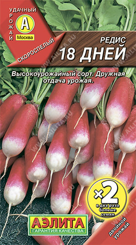 От всходов до уборки 14-18 дней. Подходит для выращивания сверхранней продукции в открытом и защищенном грунте. С первой декады апреля можно сеять в парники и пленочные теплицы в качестве предварительной культуры перед высадкой перцев и томатов, с третьей декады – в открытый грунт. Корнеплоды выравненные, массой 20-30 г. Мякоть плотная, сочная, хрустящая, сладковато-острого вкуса, долго не становится дряблой. Сорт устойчив к цветушности. Урожайность 2-2,5 кг/м2.