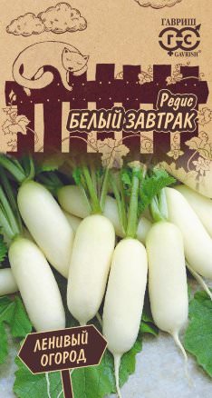 17-22 дня от всходов до технической спелости.Розетка листьев полупрямостоячая. Корнеплод удлиненно-цилиндрической формы, белый, массой 15-18 г. Мякоть белоснежная, сочная, плотная, долго не дрябнет. Используется для получения пучковой продукции. Вкус отличный, неострый, понравится детям. Посев в грунт производится в конце апреля-начале мая на глубину 1 см по схеме 5-7x15 см. Повторный посев проводят в июле-августе. Редис неприхотлив в выращивании, но дружный урожай крупных корнеплодов получится на легких, структурированных, хорошо удобренных почвах. Урожайность до 1,9 кг/м2.