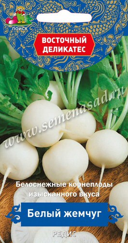 Период от всходов до уборки 30-33 дня. Корнеплоды крупные, белые, округлые, массой 25 г. Мякоть без пустот, сочная, нежная, с приятным слабоострым вкусом. При длительном выращивании корнеплоды не дряблеют, вырастают в диаметре до 7 см и сохраняют вкус. Сорт устойчив к цветушности.