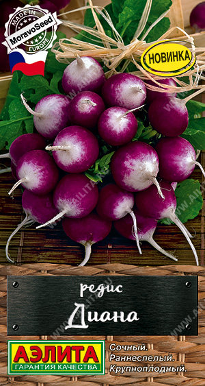 Раннеспелый, холодостойкий сорт редиса чешской селекции от компании MoravoSeed с крупными, двухцветными корнеплодами. Формирует урожай через 30-35 дней после посева.