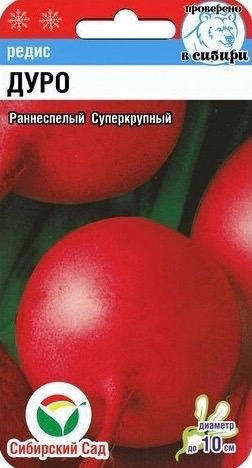 Сорт редиса (срок 20-25 дней). Корнеплоды розово-красные, диаметром до 10 см. Мякоть белая, сочная, сладкая, слабоострого вкуса. Сорт не склонен к цветушности, отличается стабильной урожайностью, способностью длительное время сохранять товарные качества плодов.