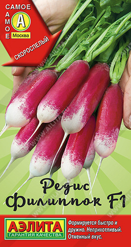 Относится к популярному типу “французский завтрак”. К уборке приступают через 20-23 дня после всходов. Подходит для сезонного выращивания в открытом грунте и круглогодичного в обогреваемых теплицах. Корнеплоды красивого товарного вида, массой 20-25 г, с коротким осевым корешком и небольшой розеткой листьев, не растрескиваются. Мякоть белая, сочная, хрустящая, приятного вкуса без остроты. Гибрид устойчив к большинству болезней культуры, легко переносит неблагоприятные погодные условия, не стрелкуется. Хорошо транспортируется и хранится продолжительное время в холодильнике. Урожайность 3-3,5 кг/м2.