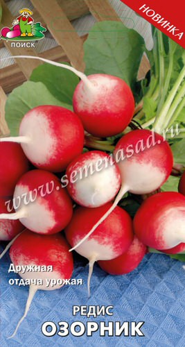 Раннеспелый сорт. Период от всходов до сбора корнеплодов 25-28 дней. Корнеплод округлый, красный с белым кончиком, головка выпуклая. Мякоть белая, нежная, сочная. Масса корнеплода 22-24 г. Вкусовые качества хорошие.