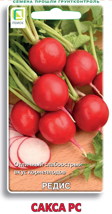 Выровненные корнеплоды отличного вкуса. Период от всходов до созревания 23-30 дней. Розетка листьев полуприподнятая. Черешок со слабой антоциановой окраской. Корнеплод округлый, красный, головка плоская. Мякоть белая, нежная, сочная, слабоострого вкуса. Масса корнеплода 10-12 г.