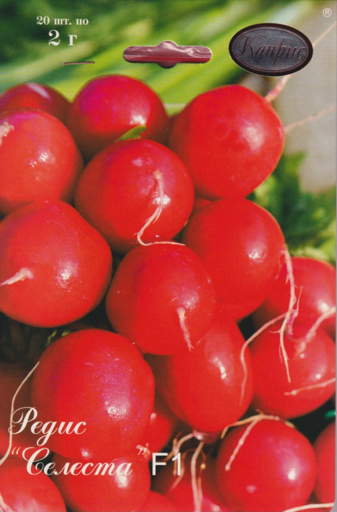 Профессиональный. Раннеспелый, стрессоустойчивый, пригоден для выращивания в открытом и защищенном грунте, созревает равномерно через 20-23 дня. Корнеплод ярко-красный, крупный, без пустот. Высокая транспортабельность.Устойчив к стрелкованию, растрескиванию и к пероноспорозу.Семена редиса сеют во влажную почву, на глубину 1-2 см. Более глубокий посев может привести к резкому снижению полевой всхожести редиса. Редис переносит заморозки до минус 4, оптимальная температуры почвы 10-13, до всходов 18-20 .