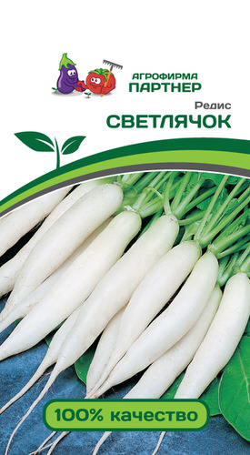 Сорт среднеспелый. От всходов до технической спелости 35–40 дней. Дарит плотные, сочные плоды с белой тонкой кожицей. Корнеплод удлиненной сосульковидной формы, с острым основанием, длиной 6-8 см и массой 35-45 г. Мякоть белая, стекловидная, очень сочная и нежная, приятного слабо-острого вкуса. Ценность сорта: высокая урожайность, отличные товарные и вкусовые качества, выровненность корнеплодов, устойчивость к цветушности. Степень погруженности корнеплода в почву на 1/4 длины. Рекомендуется для выгонки в защищённом и открытом грунте. Схема посадки 5x15 см. Урожайность 4,0–4,5 кг/м2.