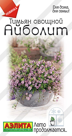 Тимьян известен как чабрец. Многолетник. Надземные части растения подходят для приготовления душистого и полезного чая, и в кулинарии. Тимьян отлично растет в горшках на солнечных балконах и подоконниках.