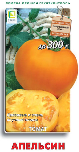 Стабильная урожайность, мясистость, выравненность плодов. Для пленочных теплиц. Среднеспелый сорт. Период от всходов до начала плодоношения 110-115 дней. Растение высокорослое, формируют в один стебель с пасынкованием и подвязкой к опоре. Плод округлый, гладкий, мясистый. Окраска незрелого плода – зеленая с темно-зеленым пятном у плодоножки, зрелого - оранжевая. Масса 180-230 г. Сорт салатного назначения.