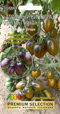 Сорт индетерминантный, среднеранний, урожайный, некрупный, короткие сложные кисти напоминают грозди винограда.
