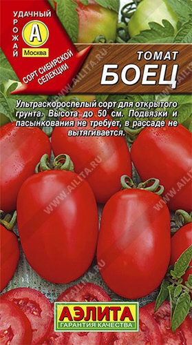 Ультраскороспелый сорт сибирской селекции для выращивания в открытом грунте. Ценится за прекрасные товарные и вкусовые качества плодов. Вступает в плодоношение примерно на 95 день от всходов. Формирует штамбовые детерминантные растения высотой до 50 см. Подвязки и пасынкования не требует, в рассаде не вытягивается. Плоды цилиндрические, плотные, гладкие, на 3-4 камеры, средней массой 90 г (первые – до 180 г), хорошо и быстро дозариваются. Назначение универсальное – для свежего потребления и консервирования. Сорт отличается устойчивостью к засухе и хорошим иммунитетом к вирусным и бактериальным инфекциям томата. Урожайность – 3-5 кг/м2.
