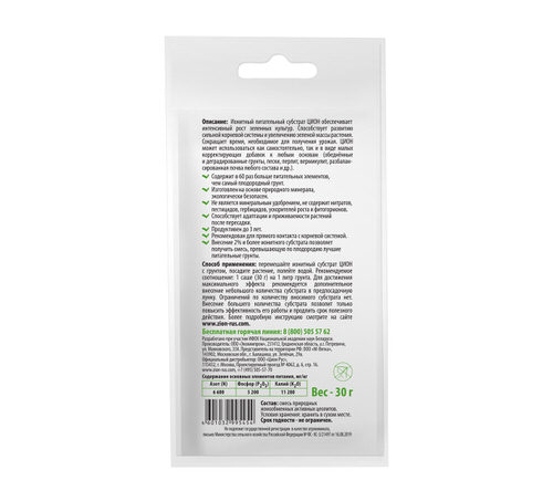 Пакетик 30 г рассчитан на объем 1 литр грунта