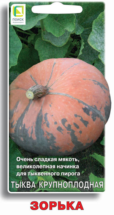 Вид крупноплодная. Среднеспелый сорт. Период от полных всходов до начала плодоношения 105-115 дней. Растение мощное, главная плеть длинная. Плод округло-сплюснутый. Масса 5-7 кг. Поверхность сегментированная, фон серый с элементами сетки. Рисунок в виде светло-серых полос и розовых пятен. Кора гнущаяся, тонкая. Мякоть ярко-оранжевая, плотная, сладкая, малосочная. Семенное гнездо небольшое. Устойчивость к мучнистой росе.