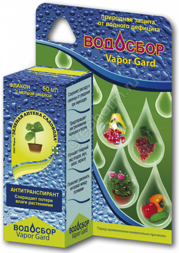 ВОДОСБОР покрывает растение прозрачной, эластичной, блестящей пленкой и замедляет потерю влаги растением без вреда для его роста и развития, процессов дыхания и фотосинтеза