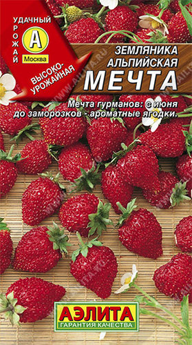 С этим сортом исполнится мечта любого садовода иметь высокоурожайную землянику наиболее раннего срока созревания, непрерывно плодоносящую весь сезон. Компактные кусты дают крупные, яркие ягоды красивой формы, массой в среднем 4-5 г, с насыщенным ароматом лесной земляники. Уже в год посева формируется более пяти цветоносов с ароматными ягодами. Сорт отличается высокой зимостойкостью, устойчивостью к засухе и ко многим заболеваниям. Практически не поражается вредителям. Может выращиваться в горшечной культуре. Выращивают рассадным способом.